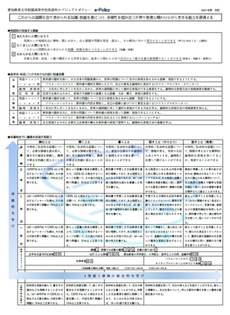 この授業の目標は、身近な話題だけではなく社会的問題などに関するまとまりのある長めの文章を読んだり聞いたりして【思考力】、内容を理解し 【判断力】、自分のことばで要約して伝えることができるようになることです【表現力】。また関連したトピックについて自分自身の関心のある分 野を調べ、文章やスピーチ、プレゼンテーションの形式で発表することも活動の一環です【思考力・判断力・表現力】。